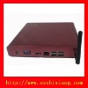 Home Theater PC (HTPC) is a convergence device that combines some or all the capabilities of a personal computer with a software application that supports video, photo, and music playback, and sometimes digital video recorder functionality. In recent years, other types of consumer electronics, including gaming systems and dedicated media devices have crossed over to manage video and music content. The term "media center" also refers to specialized application software designed to run on standard PC.An HTPC and other convergence devices integrate many or all components of a home theater into a single unit co-located with a home entertainment system. An HTPC system typically has a remote control and the software interface normally has a 10-foot user interface design so that it can be comfortably viewed at typical television viewing distances. An HTPC can either be purchased pre-configured with the required hardware and software needed to add television programming to the PC, or can be cobbled together out of discrete components as is commonly done with software based HTPC setupsAdvantages:1 Saving-power: the CPU North bridge, South bridgeI/O chipVGA chipsound chip and LAN chip of this computer are all using the low-energy chipset(produce by VIA). The total power consumption is just 15W, even lower than 1/10 of the normal computer. So we can help you to save a lot of electricity and money.2 Smart body: with the great support of VIA, we are using the most advanced integrate technology to let the computers body reduce to 210*220*30mm. it is just a half size of a household-phone. The customers can easily settle it everywhere, and your room will be more beautiful with the little computer.3 Advanced functions: Although the computer is little and low-energy, but the strong function will satisfied you. In the computer we equipped the 1000m LAN cardVGA portHDVI port9 COM serial interface4USB ports, furthermore it could support 5.1 dolby digital monointernal WIFIHD-video and so on. The system has fine compliant ability, it can support Windows and LINUX.4 Strong professional: the Crown Box mini computer is special for the certain field, could satisfy the office surfing and entertainment at the same time. Considering some field, we specially make two designs: 1 with no fun design, solve the noise source, return a quiet place to our customers. 2: security control system design, you just need to equip one accessory, the system will protect your personal information.Kit ContentEach ZX-HT120 kit included a main product, power supply/cord, remote control, USB receiver, antenna lead-in, operation manual.SizeWidth: 210 mm, Depth: 220 mm, Height: 30 mmWeight1.10kg. Shipping weight (includes power adapter, packaging, documentation, etc.): 2.0kgPower input50-60Hz 100-240V DC 2.5A power supply includedPower output19V-3.42ACPUIntel Atom N330(Dual core 1.6G 533MHZ/L2 Cache 1M)CPU FanLiquid high speed low noise fanCOMS ChipsetNvidia MCP7AGPU ChipestNvidia 9300M (MCP7A inside)MemoryDDRII 1GB 533/667/800Mhz (Enabled extend to 4GB)HDDSATA2 160GB (Enabled extend to 1TB or more)WIFI802.11 a/b/g Wi-Fi certified network connectionInterface port1xHDMI port(Support 1080p video);5xUSB2.0;1x3 in 1 card reader (MMC/SD/MS.PRO);1xLAN(RJ45) 1000M network card;D-Sub VGA;E-SATA (3GB/s)ColorPink/GoldAudioWith HIFI5.1 surround stereo sound, best effect of soundNetwork connection10/100M Ethernet LANsMultimedia supportHardware-accelerated 3D graphics, hardware-accelerated video support for most media formats on stand-alone media player applications and browser-based videoReliability (MTBF)>100,000 hours (calculated using Bellcore Issue 6 TR-332, Case 2, Part I at 40° C)Environmental0 to 40 degrees Celsius 10 to 85% relative humidity (non-condensing) No moving parts permits use in high dust / particulate / vibration environmentsPC configurationSee recommended hardware configuration guide on the Product List or NC-FLY websiteSupported O/SDOS/Windows XP3/VISTA/Windows 7,windows 2000/2003, windows 2008,etc